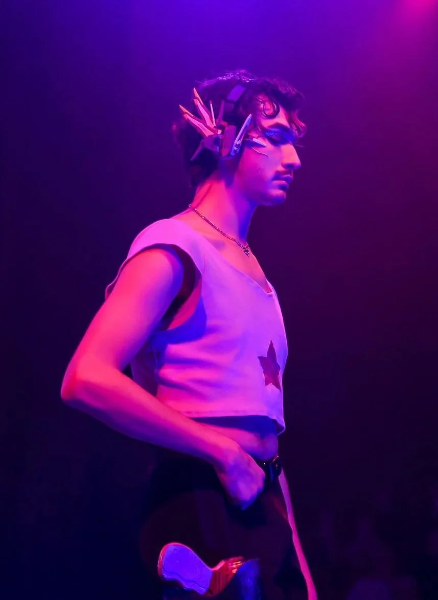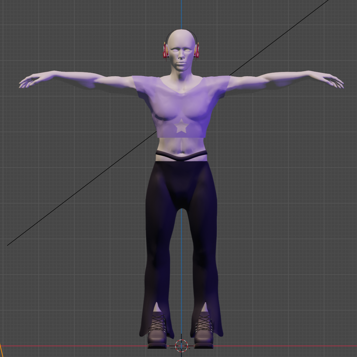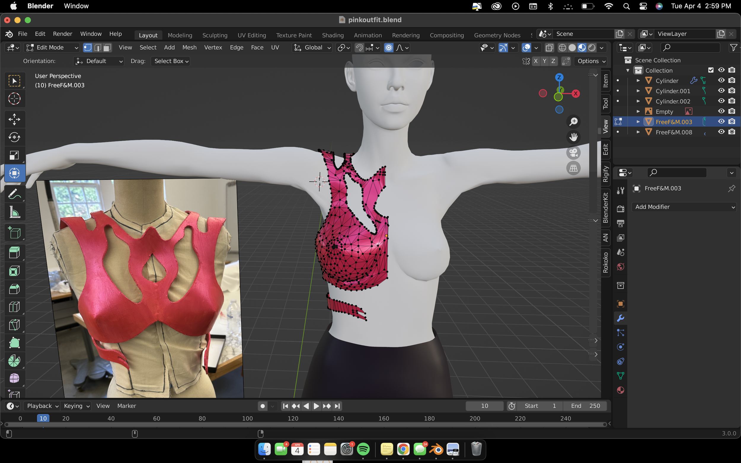 The student provided her sketches and initial outfits for me to 3d model. Most of the final wearables are different due to time constraints and last minute changes on both parties, as both she and I were working simultaneously on our deliverables for this art show. She was heavily inspired by futurism for her fashion line. Her portfolio can be found here