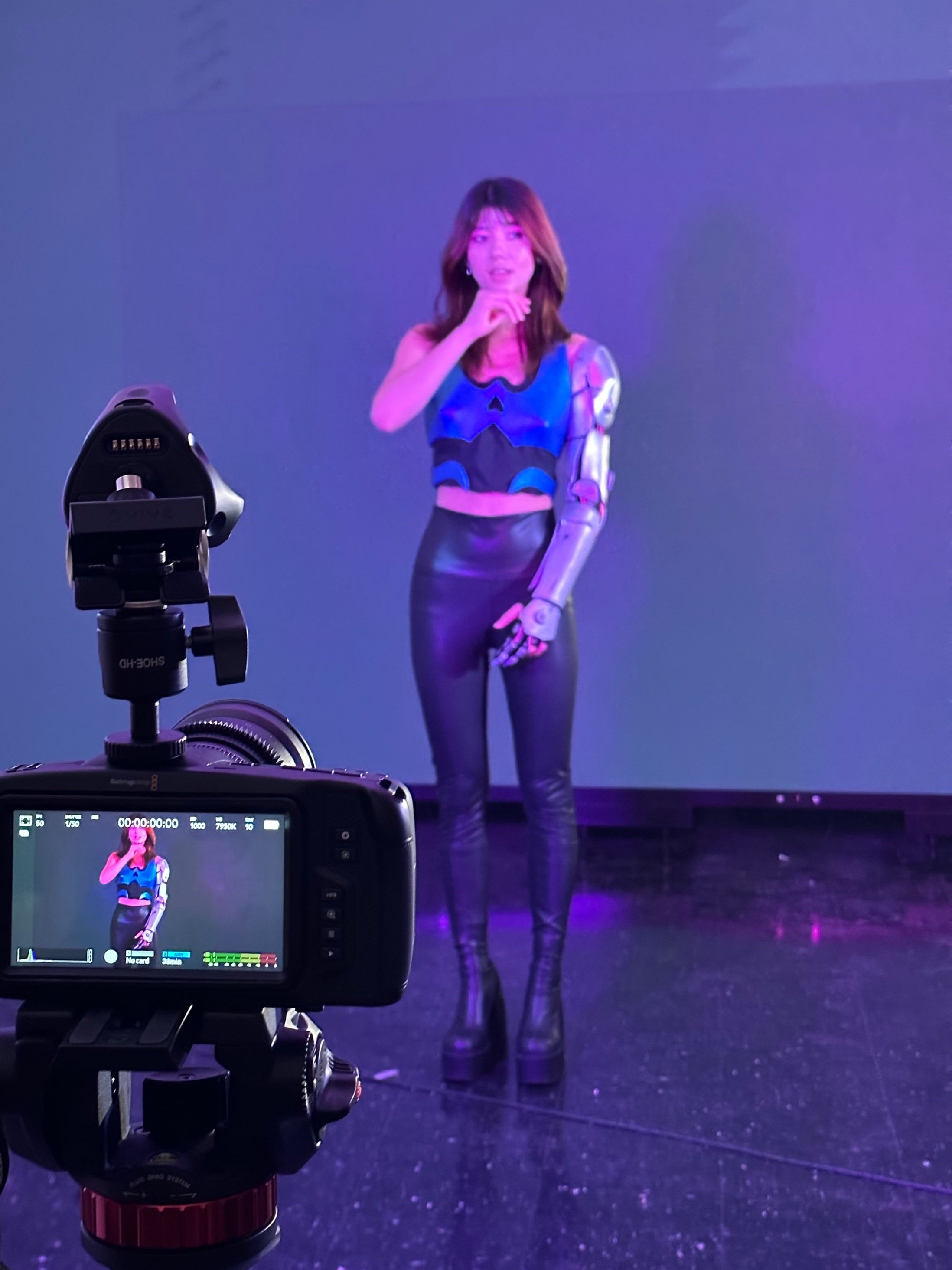 My initial idea involved utilizing a widescreen frame of looping animations to simulate a futuristic diagnostics screen, showing “vitals” and related content. The models would be instructed to walk in front of the screen and pose in front.