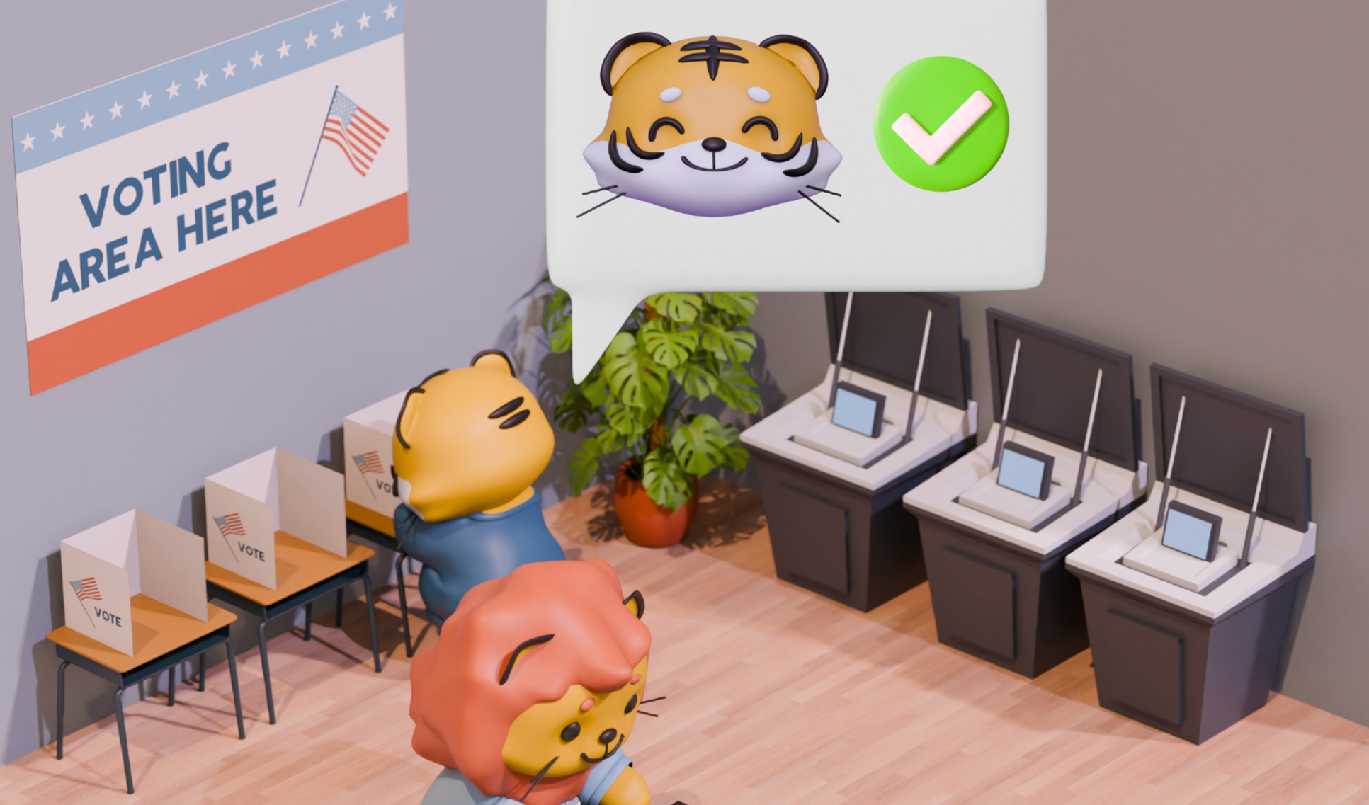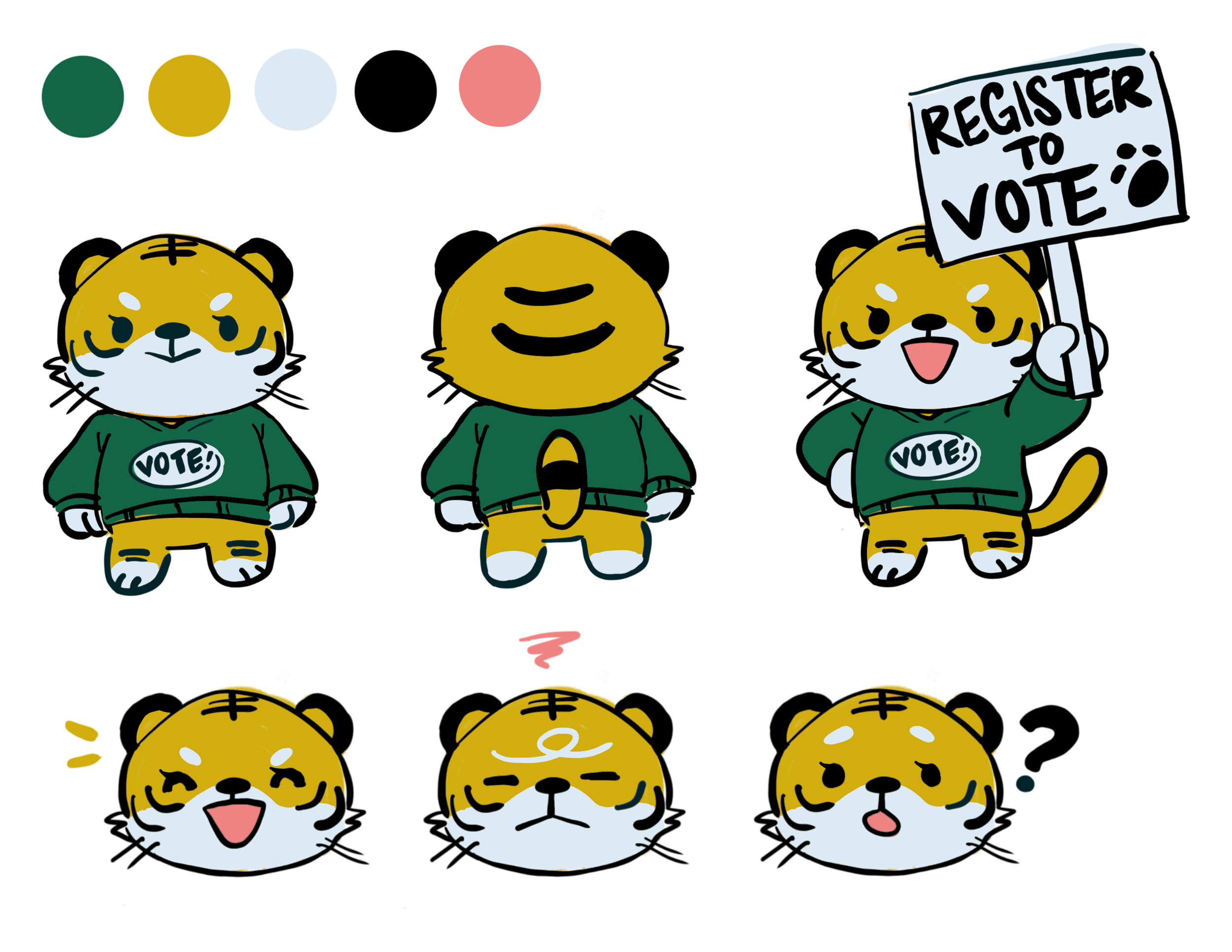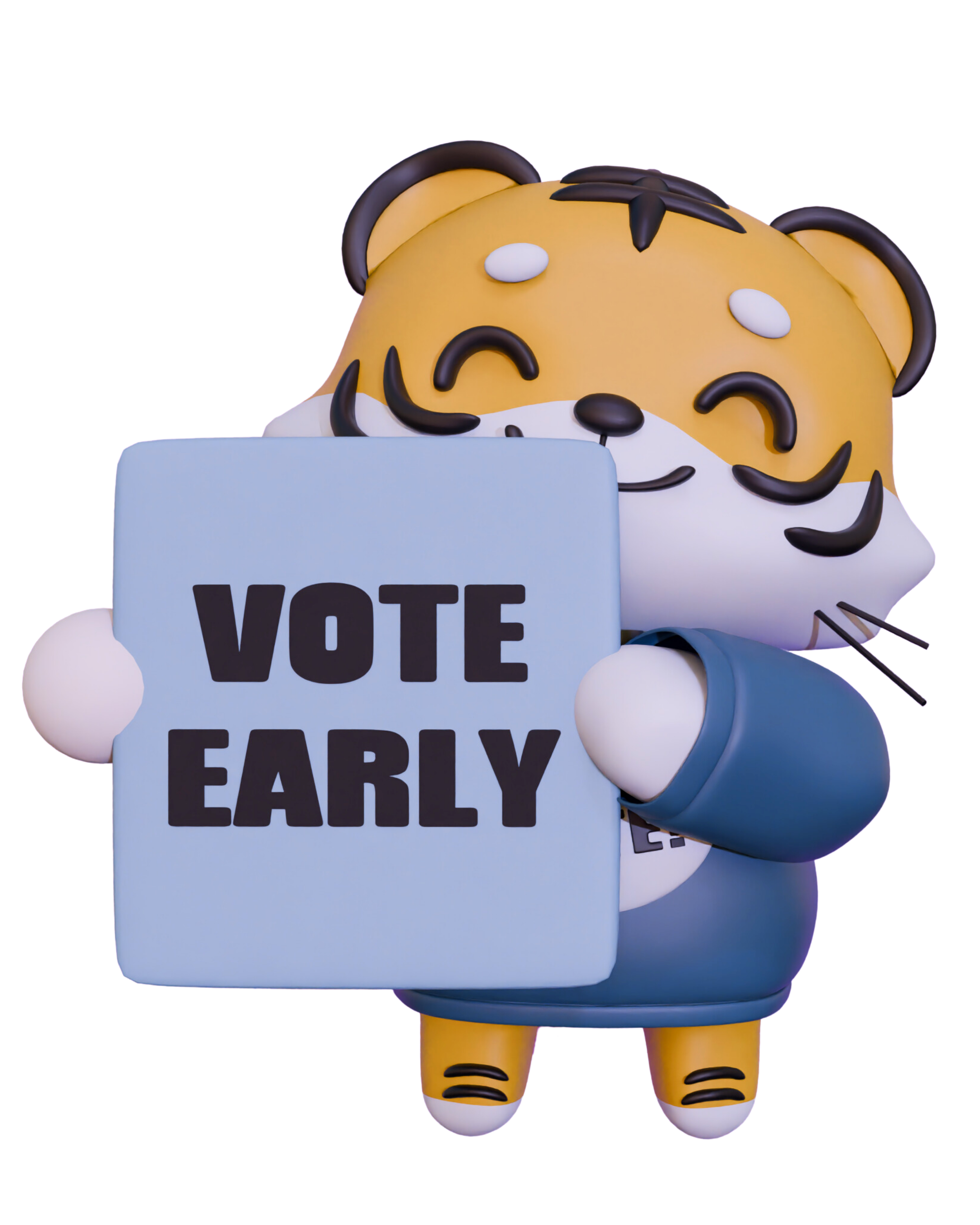Designed an early voting campaign mascot and slogan designs in Blender and Figma.